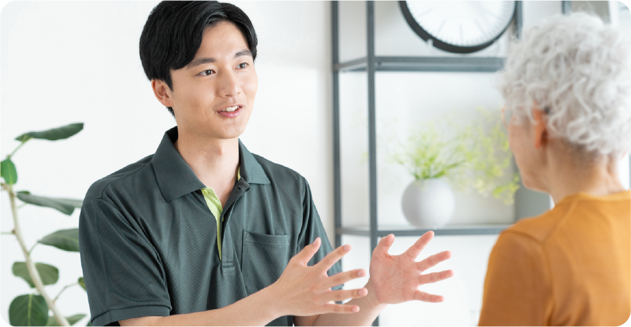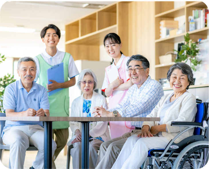 デイサービスから老人ホームまで、生活に寄り添い、豊かに毎日を過ごせるよう援助します。