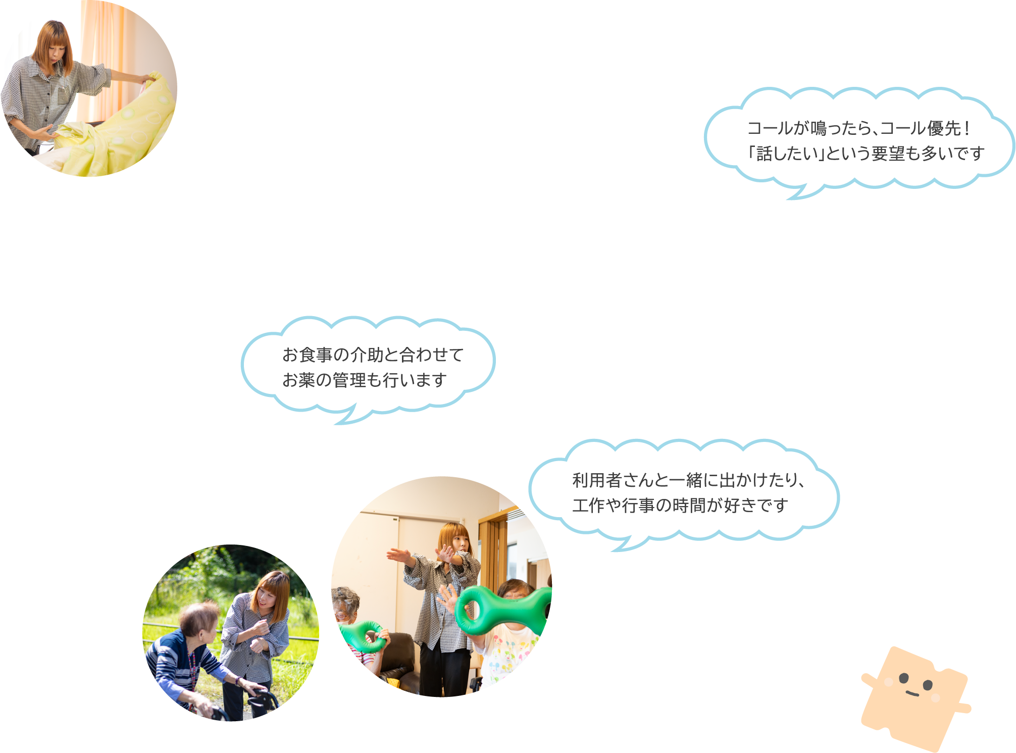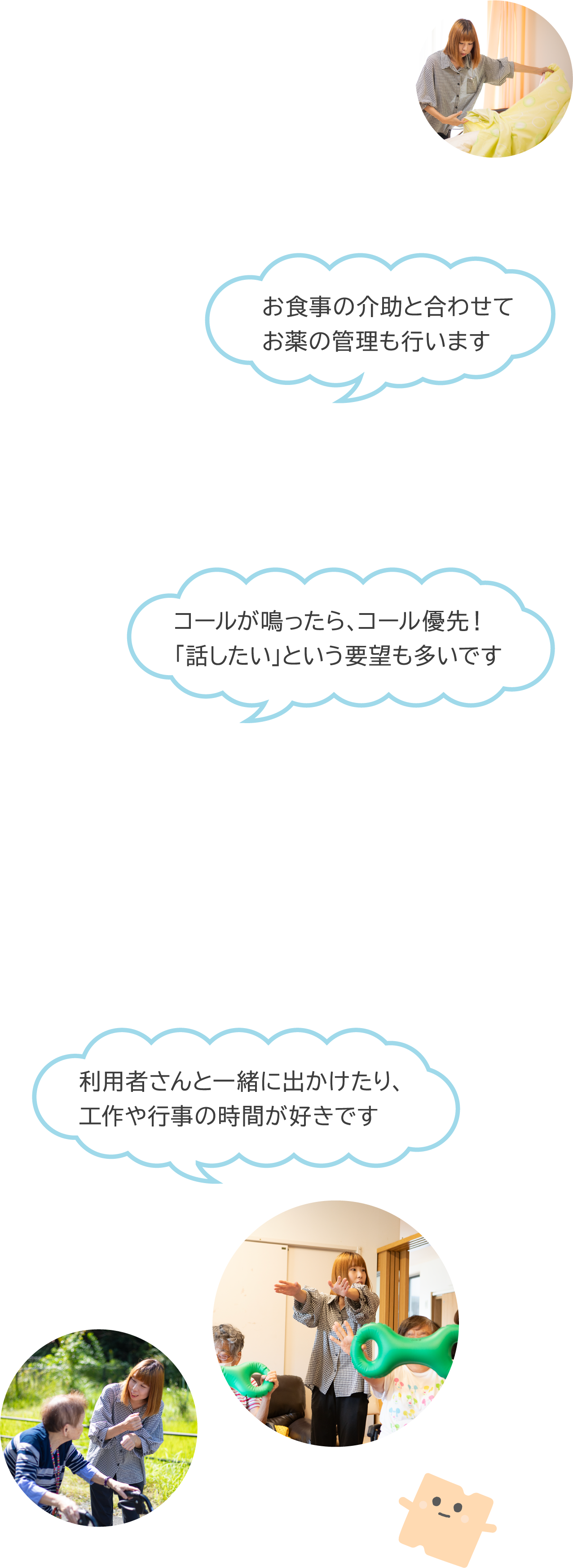 この道を選んだのは、両親ともに福祉の現場で働いていたことが大きかったと思います。「こんなことがあったよ」 「うちの利用者さんが…」と、いつも家で楽しそうに話していて、私も早くから福祉の仕事に就きたいと考えていました。